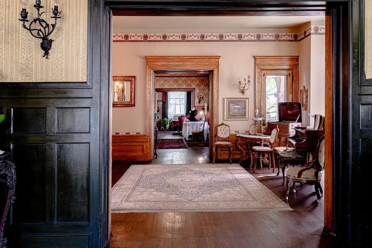 Our Dining Room and Downstairs Library are the ideal location for appetizers, drinks and mingling. It even contains the original hand carved dining room table from when the home was built in 1869 where you’ll get to eat breakfast the next morning. This table has hosted US Presidents, foreign dignitaries, poets, authors, actors and more.