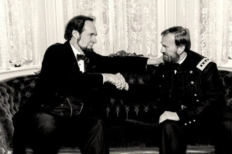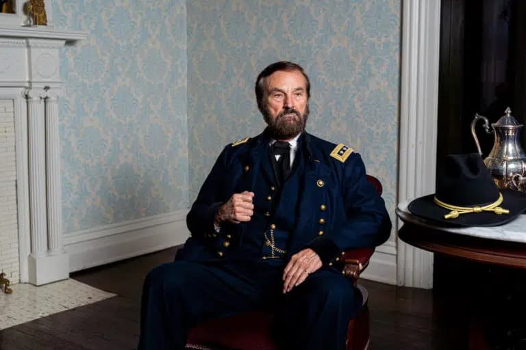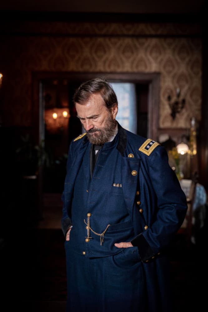 Dr. Curt Fields, as Ulysses S. Grant, in the parlor room at Vrooman Mansion in Bloomington, Illinois.