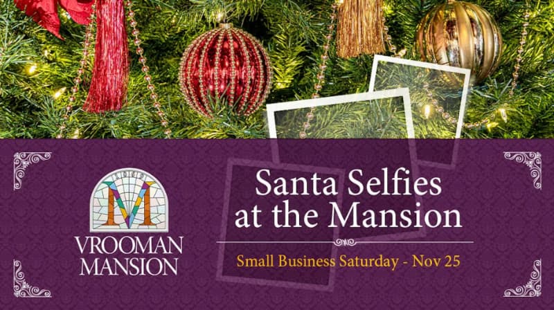On Small Business Saturday (Nov 25) from 11a-4p, Vrooman Mansion is opening its doors to the public for a holiday-themed photo opportunity with our famous holiday decorations and Santa.